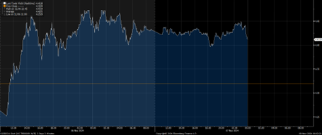 As expected, the FOMC continued is recently initiated rate cut cycle with a further 0.25% cut overnight (Thursday night Australian time). With inflation broadly under control, it appears that the Fed is now starting to focus on the full-employment aspect of their mandate and the market is pricing in 75% chance of a further 0.25% cut in December. Fed Chair Powell was asked about the potential impact of the new administration on the rate path, and his response was “In the near term, the election will have no effects on our policy decisions”.